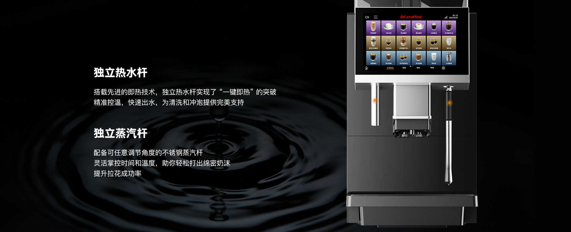 F90作为一款在办公酒店产品线的创新产品,首次采用21g金属冲泡器,并配置储水式加热锅炉,实现单次完成大杯量/双倍意式浓缩,并配置双加热系统(锅炉配置),以及双研磨系统,让出品更加高效和灵活。