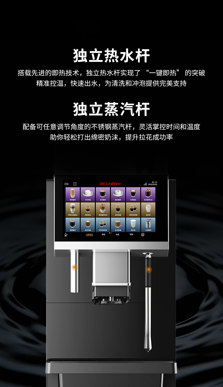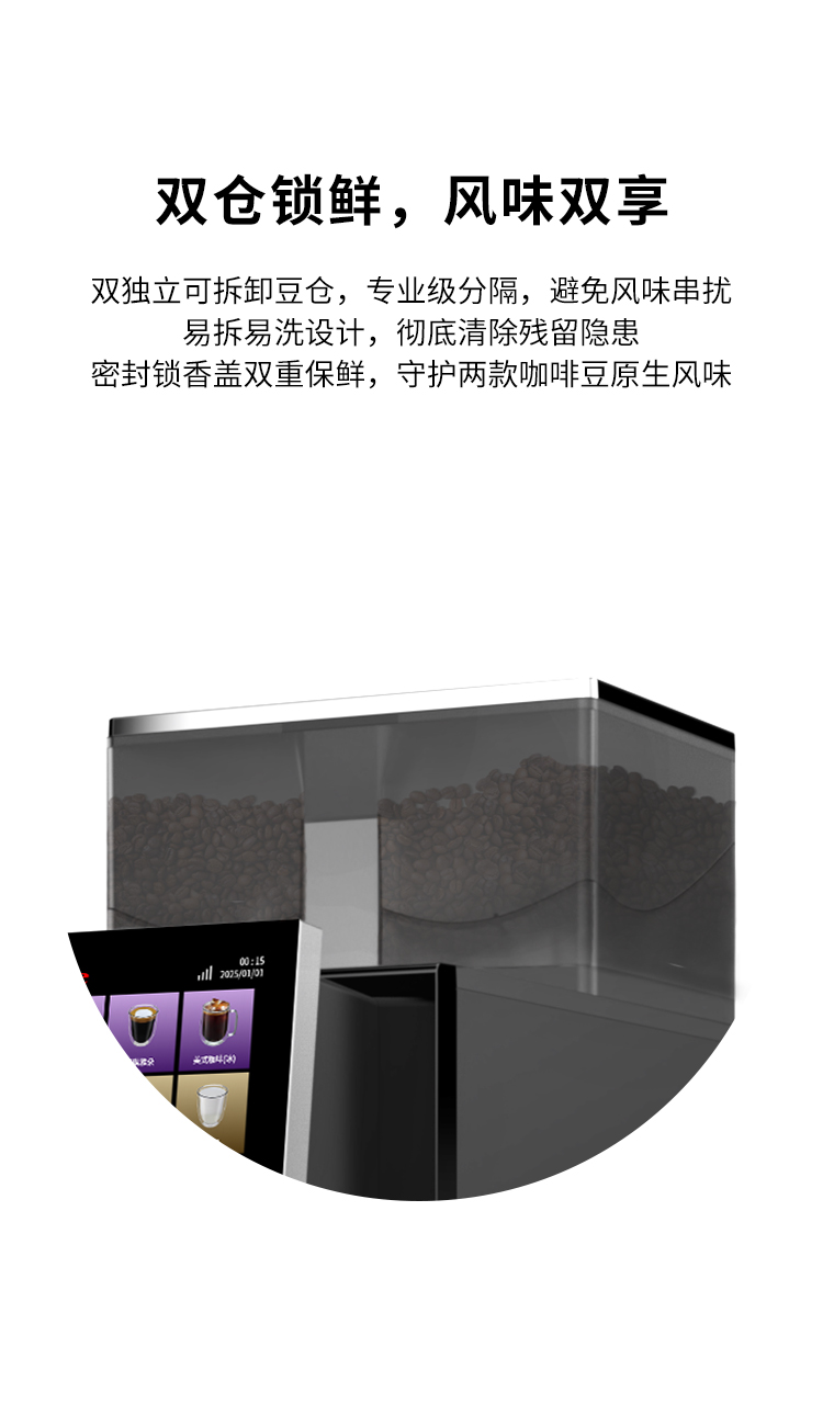 F90作为一款在办公酒店产品线的创新产品,首次采用21g金属冲泡器,并配置储水式加热锅炉,实现单次完成大杯量/双倍意式浓缩,并配置双加热系统(锅炉配置),以及双研磨系统,让出品更加高效和灵活。